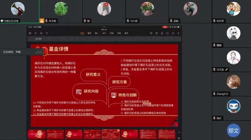 会上,相关教师就拟申报项目研究背景、研究目标、研究内容、研究方案、拟解决的关键科学问题、创新点及研究基础等方面进行了汇报。就选题的新颖性、研究内容的合理性、拟解决科学问题的准确性、研究方案的可行性等进行了热烈研讨。