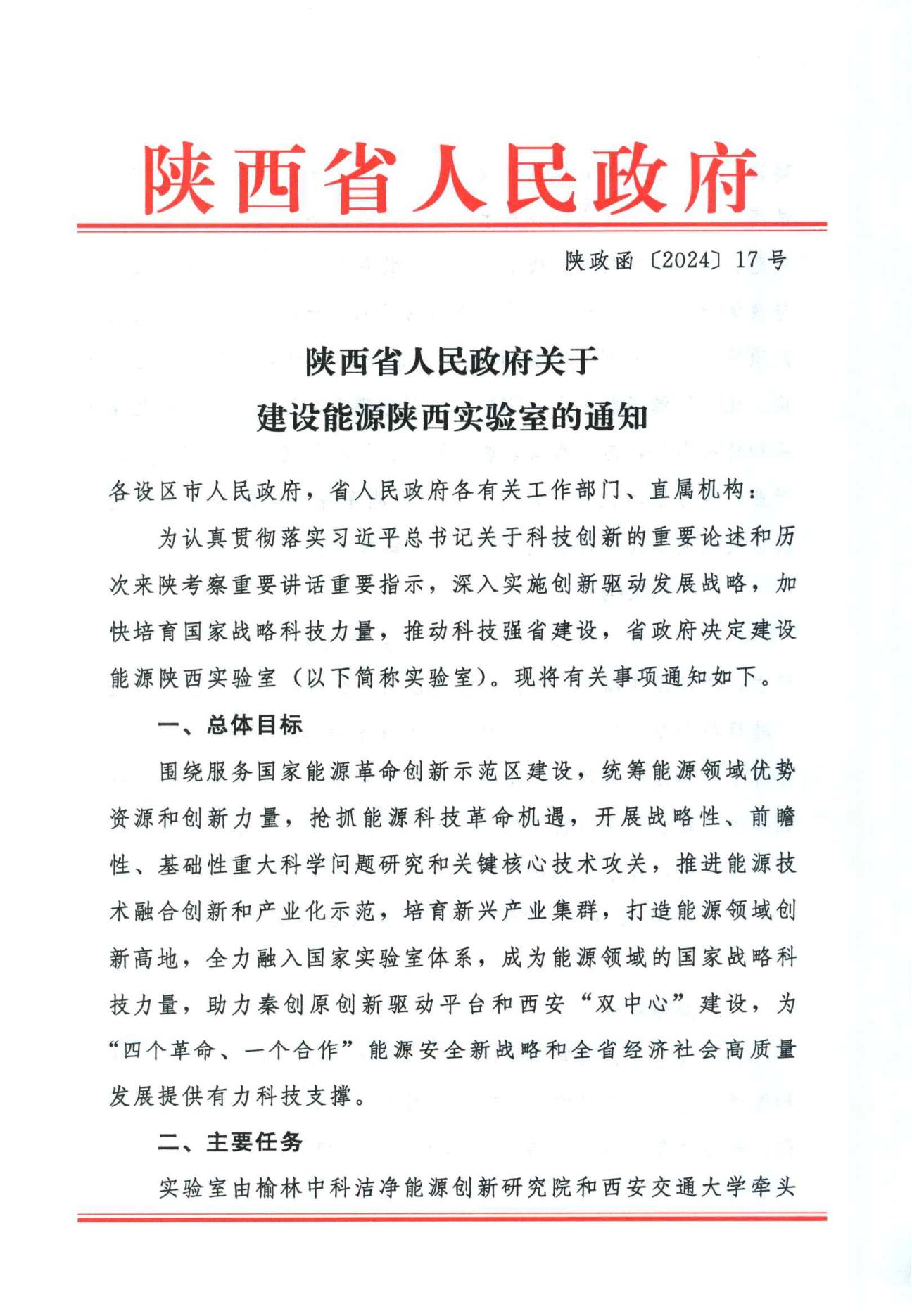 建设能源陕西实验室是省委省政府认真贯彻落实习近平总书记关于科技创新的重要论述和历次来陕考察重要讲话重要指示的重要举措,也是深入实施创新驱动发展战略,加快培育国家战略科技力量,推动科技强省建设的重大实践。