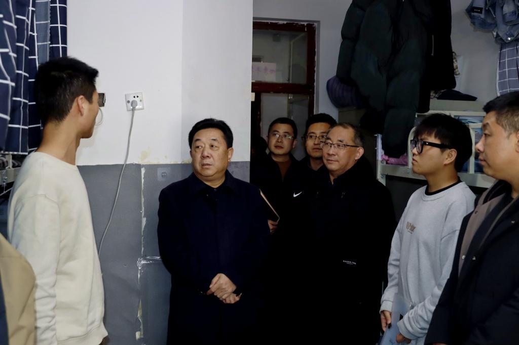 在学生公寓楼,校领导带着新年的问候认真询问已报到学生假期学习生活情况与来校交通安全情况,并寄予学生在新学期要有新作为,在追梦、圆梦的路上继续奋进。