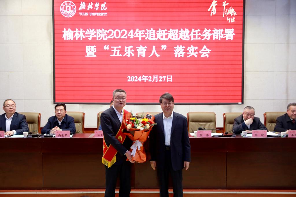 康伟强调,2024年工作的关键重点,一是办好六件大事要事赋能高质量发展。围绕“高质量发展”这条主线,持续加快追赶超越,紧紧锚定追赶超越专项任务的各项指标要求,严格压实各级责任主体,任务分解、明确目标,进一步激发团队活力,坚定不移地加大改革创新力度;完善人才培养方案,全面推进五乐育人,在“五乐”育人中构建 “五育并举”的新生态新格局,将“五乐”育人纳入人才培养方案;盯紧大学目标建设,聚力优化各项指标;深化教学改革,扎实做好评估整改;抓紧关键节点,强力推进新校区建设;突出特色鲜明,加强大学文化建设。二是聚焦六大方面提高人才培养质量。以“三全育人”为核心,增强思政育人成效;用好审核评估整改、课程建设和团队建设三个教学管理工作的总抓手,夯实本科教育质量;坚持以学科建设为引领、启动实施分层分类学科管理办法,提升学科建设水平和研究生培养质量;健全“招生—培养—就业”联动机制,优化招生就业工作;提高学生创新创业能力;加强学生教育和管理服务。三是把牢三大维度强化师资队伍建设。优化人才发展生态,持续优化以质量与贡献为导向的人才评价制度,实施教育家精神引领行动,强化师德师风建设,推进绩效分配改革,继续完善以增加追赶超越内生动力为导向的绩效分配体系;加大人才引进力度,围绕一流学科专业建设需求,实施领军人才引进计划,畅通重要人才引进“绿色通道”,推进团队引进模式,实现共享引才;强化人才梯队培养,加大高层次人才培育力度,谋划人才自主培养体系,探索博士队伍建设路径和方法。四是紧盯三个着力点服务地方发展。紧盯大项目大成果,抓好国家自然科学基金、国家社科基金及产学研重大项目等立项申报工作,制定科研团队建设激励办法;紧盯政产学研用,继续深入研究榆林,深化“跑三”,加强与地方政府、行业部门和骨干企业等单位的合作,深化校地、校企融合发展,推进大学科技园建设;紧盯乡村振兴,争取新增一个“双百工程”产学研一体化项目,持续发扬脱贫攻坚精神,强化责任担当。五是聚力实施三大举措改善民生福祉。持续加快绥师校区发展,深度融合和卓越提升,充分利用榆林市丰富的地域文化和革命历史文化资源,进一步强化“双师双能”型教师队伍建设;持续强化资金资产统筹,深化资金资产的综合管理,保障学校财务稳健运行;持续加强公共保障和民生工程,做好校园卫生和消防安全隐患大排查及整改工作。