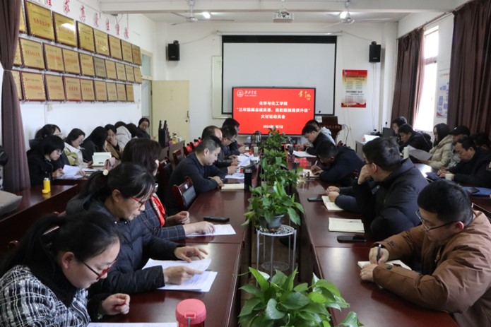 化学与化工学院党总支书记就“三年回顾总结反思、追赶超越提质升级”大讨论进行总结和工作部署。他表示,化学与化工学院是一个有战斗力的集体,在过去三年的追赶超越中,全体教职工紧紧围绕学院“追赶超越”专项任务安排部署,为学院的高质量发展付出了辛勤的汗水和心血,取得了可圈可点的优异成绩!他强调,在2024年的工作中,全体教职工应众志成城、攻坚克难,圆满完成追赶超越提质增效任务。一要加强党的领导,突出政治引领。发挥教工党员在追赶超越提质升级中的先锋模范作用,发挥基层党组织在各项业务工作中的战斗堡垒作用,坚持把党建工作与业务同部署、同推进、同落实、同考核。二要大力实施“五乐育人”工程,营造良好的育人氛围,强化文化育人功能,推动学院文化建设全面发展,实现学生培养提质升级。三要深入落实立德树人根本任务,守牢为党育人、为国育才的初心使命。通过重视课堂教学巡查督学、开展学风主题教育讲学、构建三级联动模式帮学、加强常规学风检查巡学、完善学风建设制度管学、宣传学风优秀典型比学、开辟学风建设专栏促学,多措并举构建“督学、讲学、帮学、巡学、管学、比学、促学”的七位一体学风建设体系,实现人才培养提质升级。