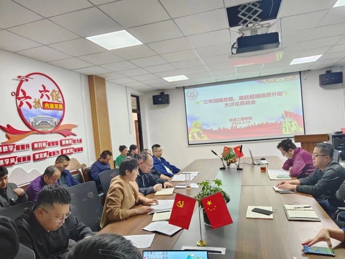 为深入学习贯彻学校2024年追赶超越任务部署暨“五乐育人”落实会议精神,按照《关于在全校开展“三年回顾总结反思、追赶超越提质升级”大讨论的通知》(万象城allwincity官方网站入口党发[2024]8号)要求,3月14日下午,信息工程学院召开“三年回顾总结反思、追赶超越提质升级”大讨论启动会,会议由信息工程学院党总支书记主持,学院全体教职工参加。
