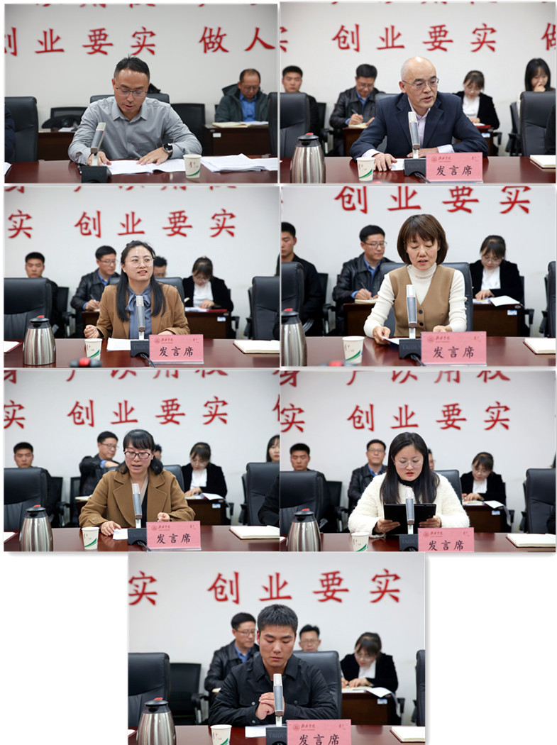 座谈会上,四名教师代表张柱华、赵慧、刘小红、李飒飒与两名学生代表纪科宇、陈石磊结合个人学习感悟和教学工作体会,分别进行了交流与发言。