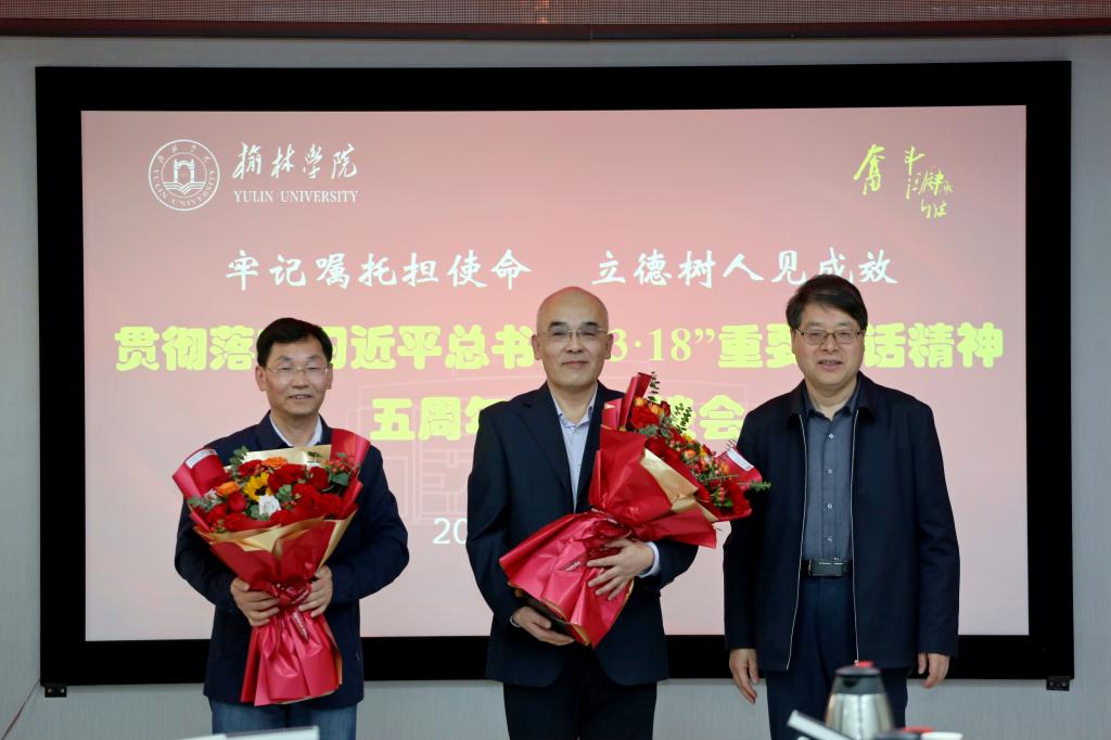 座谈会中,为进一步表示校党委对一线思政课教师的关怀与勉励,张新柱、康伟分别向三级教授马举魁、张柱华及获得省级以上思政奖励的刘小红、李飒飒、薛改霞、刘守跃、赵慧、王小康、郭靖靖、徐蓉蓉等教师代表表达祝贺并献上鲜花。