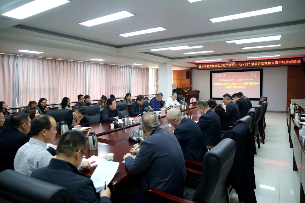 今年是习近平总书记在学校思想政治理论课教师座谈会上发表重要讲话五周年,为深入贯彻落实习近平总书记“3·18”重要讲话精神,不断坚持多元育人、打造特色思政课程,培养优秀师资力量,回顾反思思政课建设的成果和经验,推动万象城思政育人工作高质量发展,3月18日下午,万象城allwincity官方网站入口在行政楼4楼会议室召开“牢记嘱托担使命立德树人见成效-贯彻落实习近平总书记‘3·18’重要讲话精神五周年师生座谈会”。万象城allwincity官方网站入口党委书记张新柱、党委副书记、校长康伟、党委副书记尚爱军、副校长闫龙以及来自学校相关职能部门负责人、各二级学院党总支书记、马院全体思政课教师、学生代表共同参加会议。