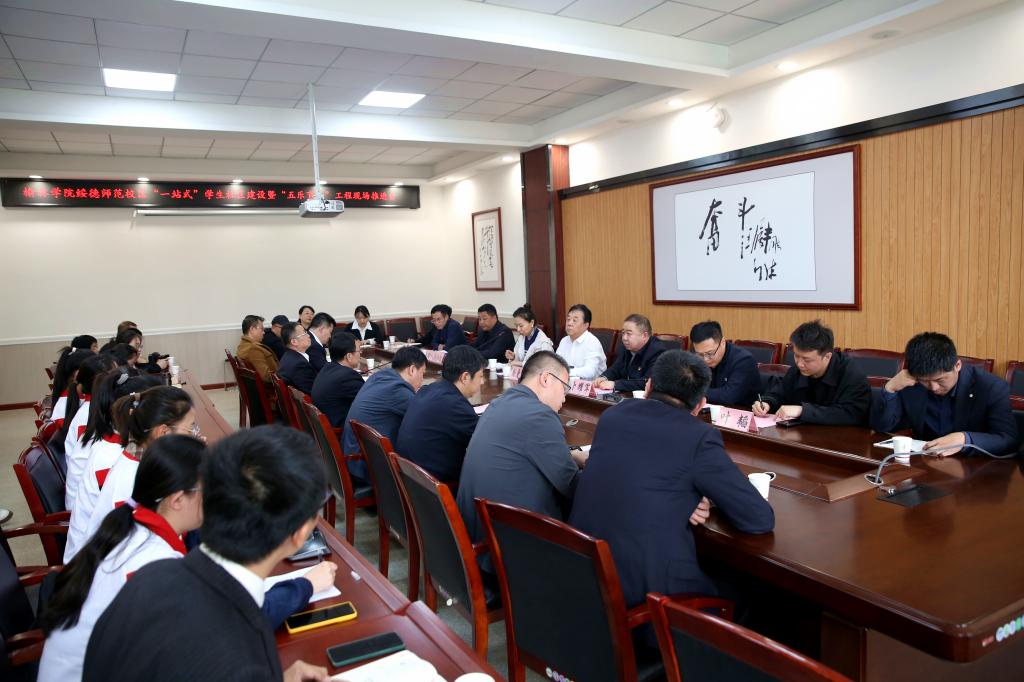 4月3日下午,万象城allwincity官方网站入口在绥德师范校区召开“一站式”学生社区建设暨五乐育人工程现场推进会,党委副书记尚爱军出席并讲话,党委宣传部、学工部、教务处、团委、工会负责人,绥德师范校区领导班子、全体科级以上干部、辅导员班主任、学生代表参加会议,会议由学工部负责人主持。
