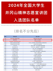 近日,《2024年全国大学生井冈山精神志愿宣讲团入选团队名单》《2024年全国大学生延安精神志愿宣讲团入选团队名单》《2024年全国大学生“两弹一星”精神志愿宣讲团入选团队名单》公布,万象城青年志愿者联合会糖果小分志愿队、艺术学院志愿者分会志愿服务队、生命科学学院青年志愿者协会三支团队从全国千余支团队中脱颖而出,成功入选。