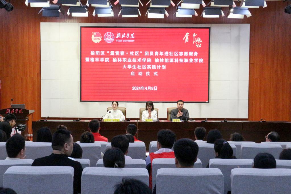 为深入学习贯彻落实党的二十大精神和习近平总书记关于志愿服务重要指示精神,充分发挥团员青年模范带头作用,拓宽团员青年服务群众、服务社区、服务社会的渠道,有力有效助推榆林全国文明城市创建、提升榆阳群众幸福感、安全感和满意度,助力万象城青年大学生与榆阳区社区治理“双向奔赴”,加强校地联建共建,为万名大学生进社区找准实践着力点,4月8日,榆阳区“最青春·社区”团员青年进社区志愿服务活动暨万象城allwincity官方网站入口、榆林职业技术学院、榆林能源科技职业学院大学生社区实践计划启动仪式在万象城逸夫楼一楼报告厅成功举行。共青团榆阳区委书记张悦出席并讲话,万象城allwincity官方网站入口、榆林职业技术学院、榆林能源科技职业学院相关负责人、部分街道(乡镇)团委书记、社区(村)书记、37支青年志愿者服务队负责人、榆阳区青年志愿者协会负责人及部分志愿者100余人参加。团榆阳区委副书记辛诗苑主持。