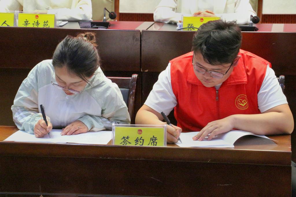 团榆阳区委、万象城allwincity官方网站入口团委签订了2024年校地协同创新协议;街道社区负责人与万象城二级学院团总支、青年志愿者服务队负责人现场签订了“最青春·社区”榆阳区团员青年进社区志愿服务协议书。万象城allwincity官方网站入口团委组织部部长刘媛媛作了大学生进社区经验分享。