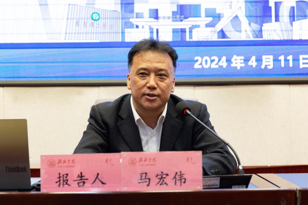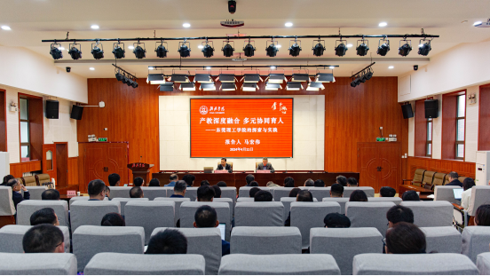 下午4:30,马宏伟在逸夫楼一楼报告厅作了题为《产教深度融合 多元协同育人—东莞理工学院的探索与实践》的专题报告。全体校级领导,各部门科级以上干部,各二级学院院长、副院长、教学秘书、科研秘书、教研室主任等300余人参加。