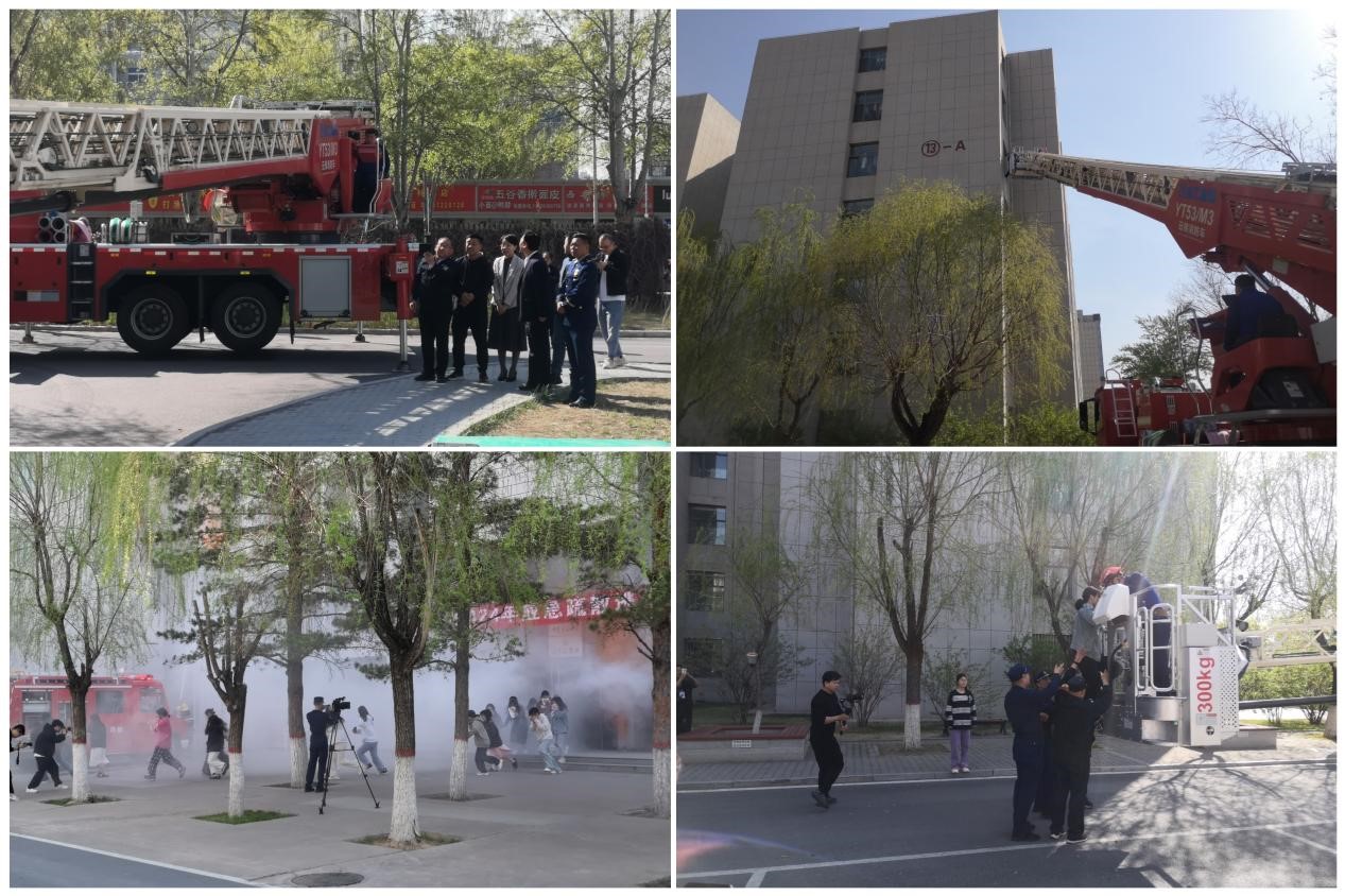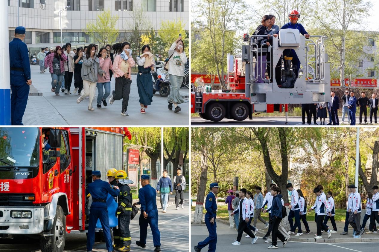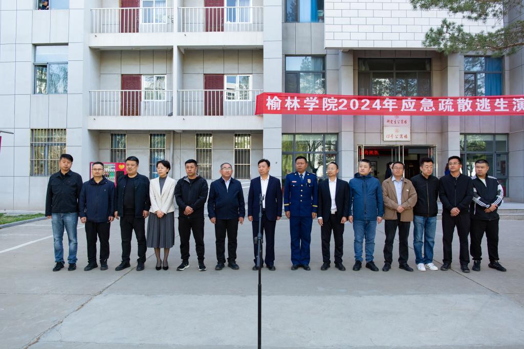 榆阳区消防救援大队党委委员、工会主席杨乔乔,学校党政办、宣传部、学生处、保卫处、国资处、后勤管理处等部门负责人出席。各二级学院师生代表、安全信息员,13号公寓楼全体学生等近千名师生参加演练。