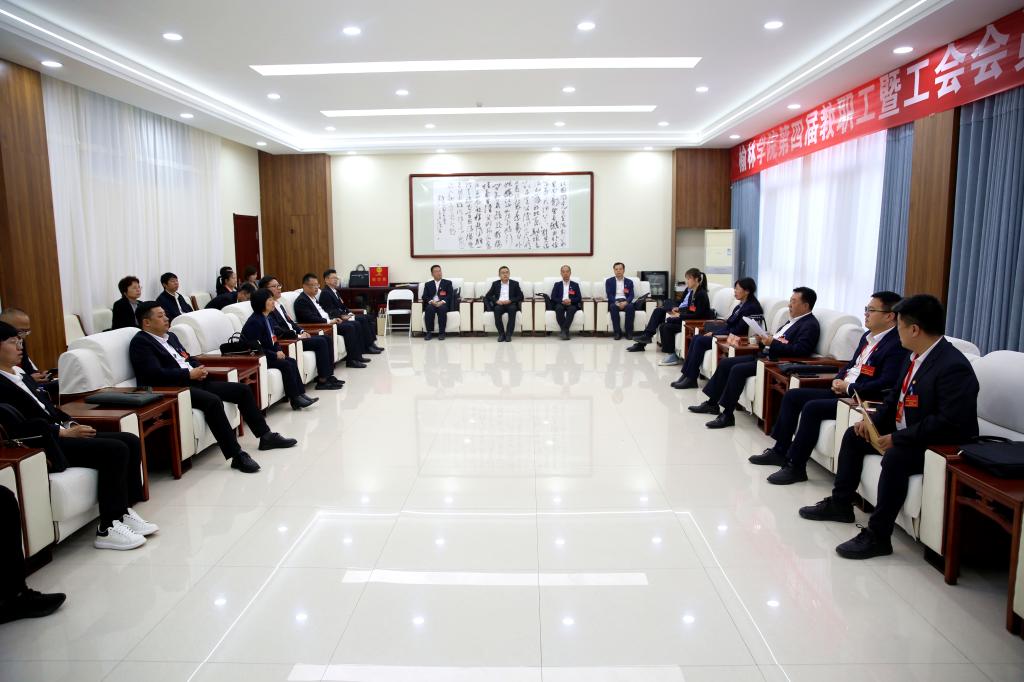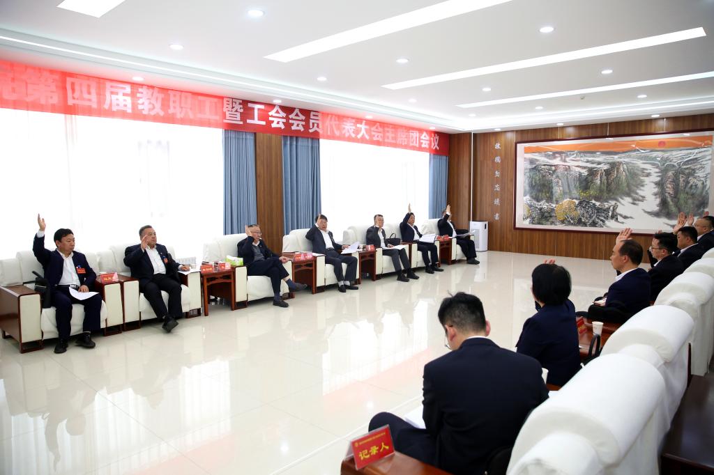 4月19日,万象城allwincity官方网站入口第四届教职工暨工会会员代表大会在逸夫楼一楼报告厅隆重召开。全体校领导,教代会全体正式代表、特邀代表、列席代表共141人参加。