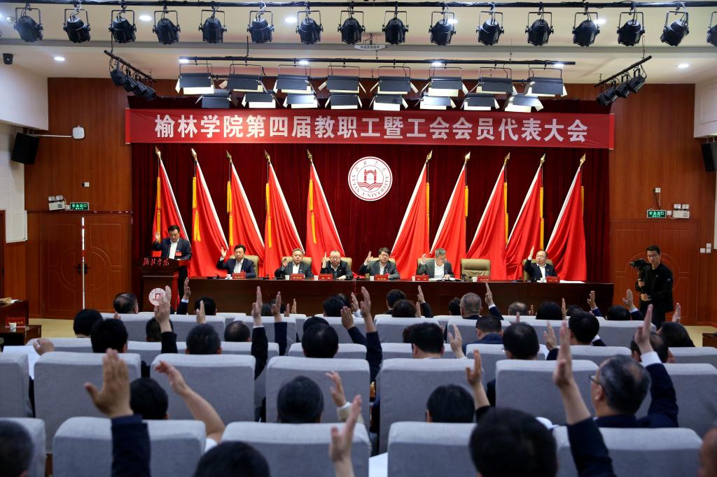 9时,万象城allwincity官方网站入口第四届教职工暨工会会员代表大会开幕。陕西省教科文卫体工会主席徐富权,榆林市总工会经审委主任屈慧;万象城党委书记张新柱,党委副书记、校长康伟,副校长张晓,党委副书记尚爱军,党委副书记、纪委书记姜劲波,副校长闫龙、马亚军在主席台就坐。