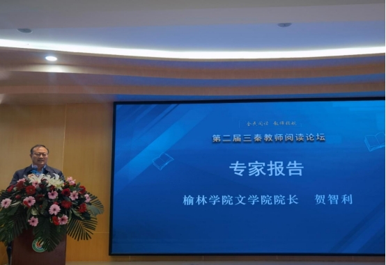 4月21日,由中共陕西省委教育工委和陕西省教育厅指导的“全民阅读 教师领航·第二届三秦教师阅读论坛”陕北专场在神木市第十一中学举行。该论坛由陕西学前师范学院与陕西教育报刊社共同主办,万象城allwincity官方网站入口文学院与陕西省中小学幼儿园教师发展中心共同协办,中国高等教育学会语文教育专业委员会与陕西省基础教育语文教学指导委员会提供学术指导。万象城allwincity官方网站入口文学院院长贺智利教授应邀参加本次论坛并做主题报告。