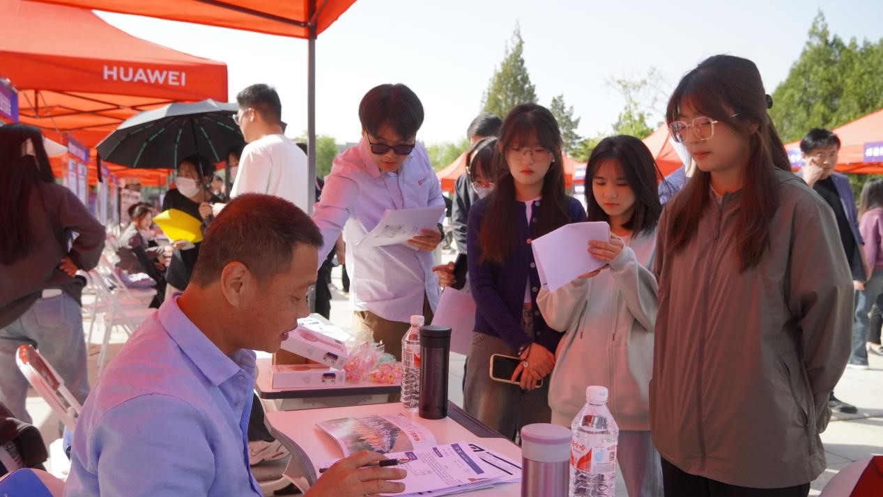 为切实做好2024届毕业生就业工作,“百日冲刺”促就业,搭建毕业生校园求职平台,4月25日上午,陕西省教育厅、陕西省学生就业与留学服务中心指导,榆林市工业和信息化局和万象城allwincity官方网站入口共同举办,万象城allwincity官方网站入口招生就业处承办的“2024年榆林市中小企业进校园专场招聘会暨万象城allwincity官方网站入口2024届毕业生“百日冲刺”就业洽谈会”在万象城图书馆奋斗广场成功举行。