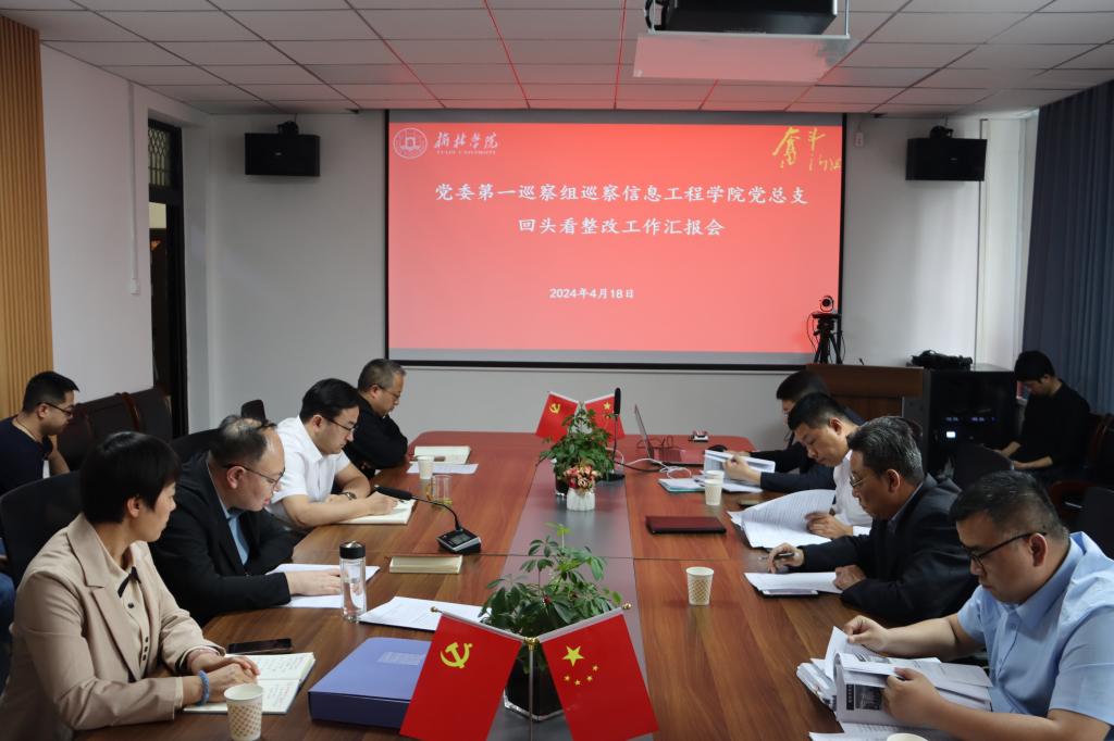 第五轮被巡察单位信息工程学院、研究生院、业务单位党总支分别汇报了整改落实情况。其中信息工程学院党总支针对巡察反馈指出的四个方面13个问题、细化为34个具体问题项,分别对应提出了34项整改措施,截止目前,28项已立行立改,6项需要长期坚持整改;研究生院党总支针对巡察反馈指出的四个方面16个问题、细化为48个具体问题项,分别对应提出了139项整改措施,截止目前,46项已立行立改, 2项需要长期坚持整改;业务单位党总支针对巡察反馈指出的四个方面16个问题、细化为39个具体问题项,分别对应提出了39项整改措施,截止目前,25项已立行立改,14项需要长期坚持整改。