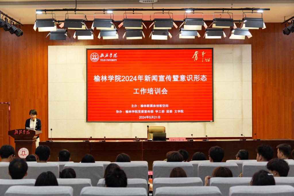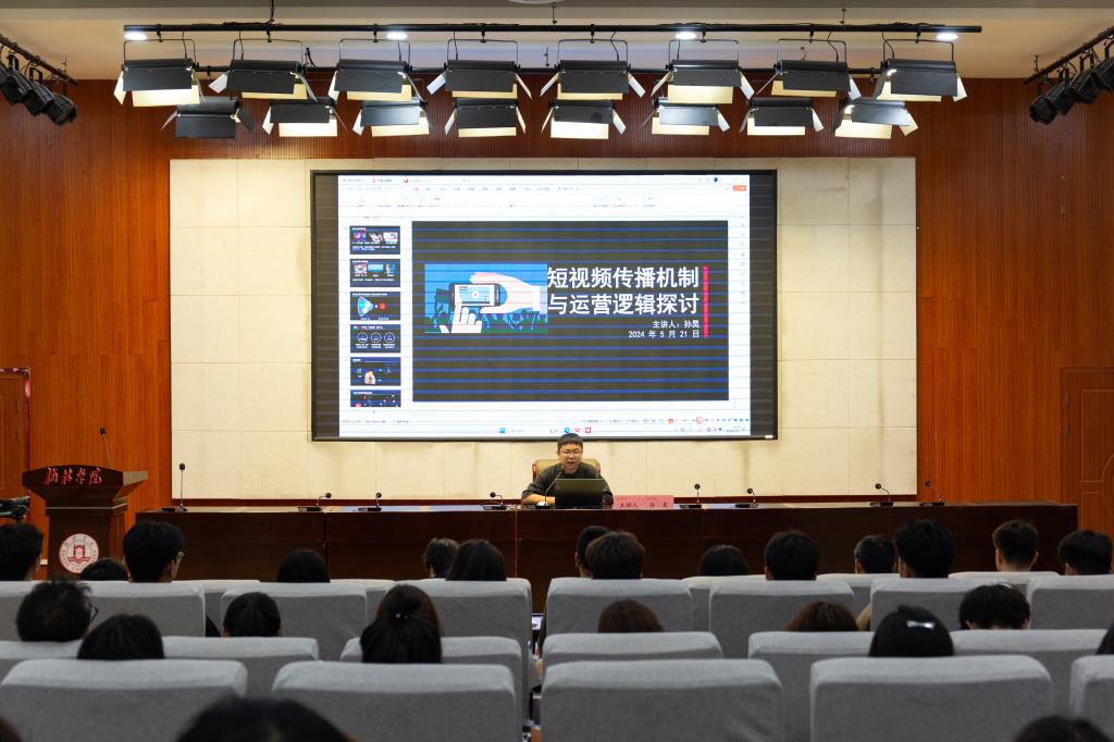 5月21日19:30,由万象城与榆林新媒体创客空间共同主办的2024年新闻宣传暨意识形态工作培训首场讲座在逸夫楼一楼报告厅举行。抖音集团陕西公司总经理孙昊应邀为师生作题为“短视频传播机制与运营逻辑探讨” 的讲座,榆林新媒体创客空间负责人李俊明详细介绍了榆林新媒体创客空间的具体情况和未来规划,万象城党委委员、宣传部部长尚莹主持。榆林市委网信办负责同志,万象城宣传部、学工部、团委、文学院负责人,二级学院负责新闻宣传工作的师生代表,新媒体中心、“奋斗”新媒体、易班工作站全体人员近200人参加了培训。