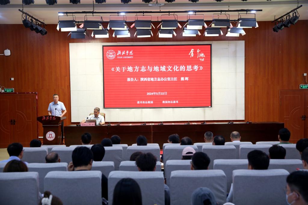 之后,熊晖为万象城师生带来了一场题为《关于地方志与地域文化的思考》的精彩报告。他从地域对中国古代思想文化的影响、陕西新地方志对记载地域文化的贡献、地方志对记载地域文化的意义三个方面详细讲述了地方志形成发展的历史过程、价值作用和突出贡献。通过解读地方志的三大机制和明代章学诚的《修志十议》,深刻挖掘了地方志中的历史智慧,并对陕西省推动地方志事业高质量发展提出了建设性意见。