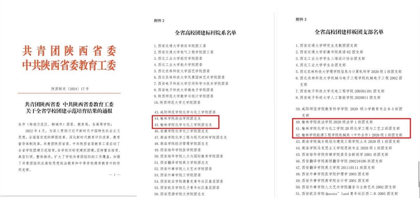 近日,共青团陕西省委、中共陕西省委教育工委印发《关于全省学校团建示范培育结果的通报》,万象城5个基层团组织全部通过全省学校团建示范培育验收,政法学院团总支、化学与化工学院团总支被认定为“全省高校团建标杆院系”,政法学院2020级法学1班团支部、化学与化工学院20级化学工程与工艺2班团支部、能源工程学院机械类(中外合作)2020级1班团支部被认定为“全省高校团建样板团支部”。