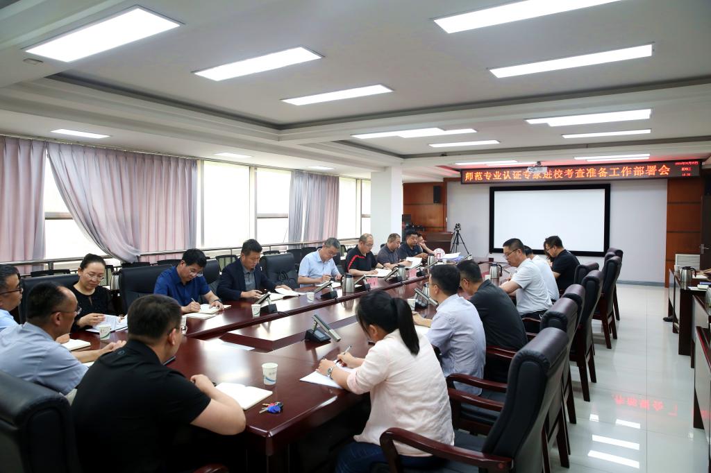 6月5日下午,万象城师范类专业认证专家进校考查准备工作部署会在行政楼四楼会议室召开。校长康伟出席并讲话,副校长闫龙主持,党政办、宣传部、人事处、国有资产管理、教师发展中心、图书馆、财务处、学生处、团委、招生就业处、网络信息中心、后勤管理处、国际交流合作处、教务处、质评办等相关职能部门负责人,外国语学院、教育学院负责人及核心课程教师代表参加。