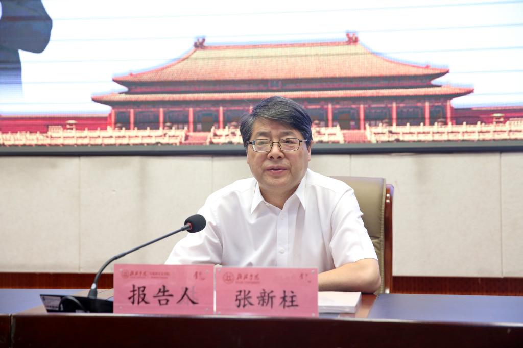 张新柱围绕五方面系统阐释了学习贯彻习近平总书记关于党的建设重要思想,以高质量党建引领学校高质量发展。一、习近平总书记党的建设重要思想的主要内容和鲜明特点。张新柱通过梳理习近平总书记党的建设重要思想的13个坚持,习近平总书记关于党的建设重要思想的鲜明的五个特点,教育引导广大党员、干部自觉做习近平新时代中国特色社会主义思想的坚定信仰者和忠实实践者。二、新时代高校党建工作的基本遵循。一是坚持社会主义办学方向;二是坚持党对高校工作的全面领导;三是坚持围绕中心抓党建,抓好党建促发展;四是坚持党的一切工作到支部的鲜明导向;五是坚持把立德树人成效作为检验一切工作的根本标准。三、高校党建工作存在的问题与困惑。一是对高校党委领导下的校长负责制认识不到位;二是二级学院党政联席会议职责不清晰、运行不畅;三是党员作用发挥不充分,党员发展、教育、管理不规范;四是高校党支部建设存在薄弱环节,活动载体单一;五是党建工作考核机制不健全,考核结果运用不充分;四、新时代高校党建工作的对策探讨。新时代高校高质量党建工作的对策可以概括为:一是实施三个带动,为学校改革发展提供正确引领。实施党建带动,发挥高校党委、院系党组织、党支部的带动作用;实施骨干带动,示范引领党员干部发挥好先锋模范作用;实施活动带动,增强党建工作的吸引力和实效性。二是扎实开展“四类党建”,系统提升新时代高校党建工作水平。抓好标准党建,抓实融合党建,抓细生活党建,抓亮特色党建。三是全面落实“七项举措”,推动高校党建工作的高质量发展。新时代高校党建工作要突出政治首位抓党建、守正创新抓党建、善作思政抓党建、凝聚人心抓党建、围绕中心抓党建、谋划抓手抓党建、学习提升抓党建。五、以党建为引领推动高校高质量发展。一是建设一流特色优势学科;二是打造一流高水平师资队伍;三是培养一流卓越人才;四是建立一流现代大学制度;五是提供一流经济社会发展服务;六是形成一流大学文化;七是开拓一流国际交流合作;八是营造一流校园生态。