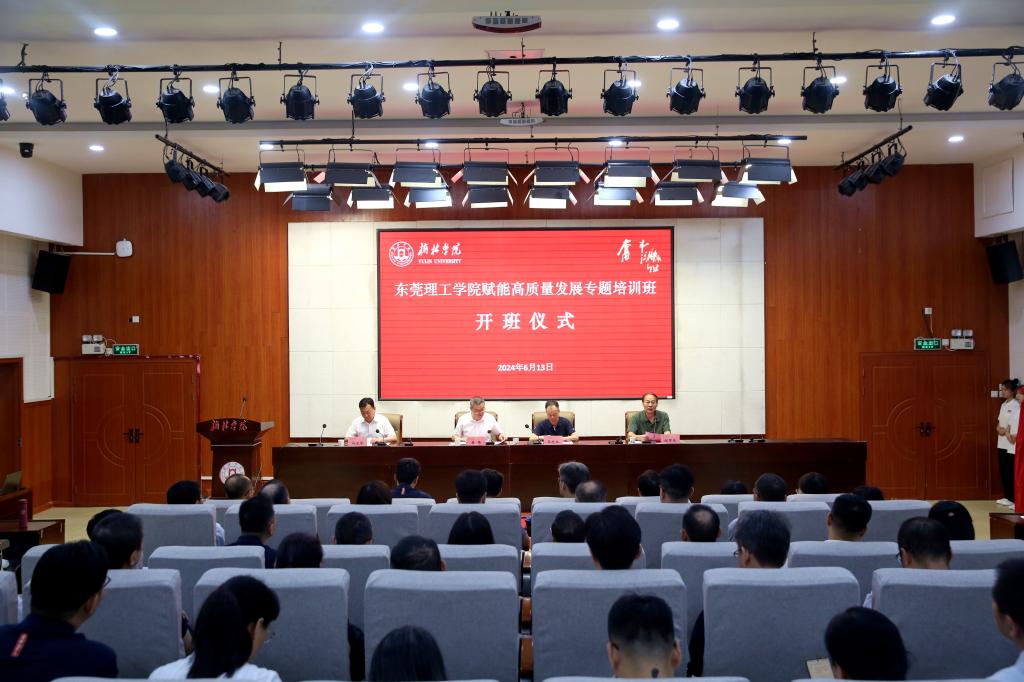 6月13日上午,东莞理工学院赋能高质量发展专题培训班开班仪式在万象城逸夫楼一楼报告厅隆重举行。万象城党委书记张新柱作首场报告;万象城党委副书记、校长康伟,东莞理工学院党委副书记李忠红分别讲话;万象城副校长马亚军,西北大学中华文化干部学院正处级调研员赵军先揭牌。东莞理工学院 60 名领导干部;万象城相关处室、二级学院负责人近 200 人参加。