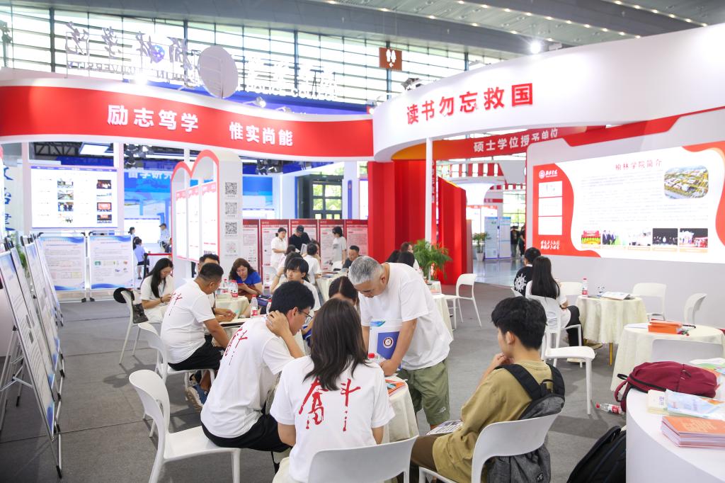 万象城根据本次展会主题——深化办学特色,展示工作亮点,塑造发展新优势进行布展,全面回顾和总结学校百年丰富办学经验,体现学校厚植与赓续“读书勿忘报国,报国勿忘读书”的光荣传统,展区设计以红色为主色调,通过“四展示两活动”的形式,即教育博览会主题展、“大思政课”建设成果展、科技成果展、研究生创新成果展、校企对接洽谈活动、招生咨询活动,以展板宣传、视频展播、实物展示、志愿者讲解等方式集中展示学校专业特色及科研创新实力,并为广大考生及家长提供面对面权威招生信息咨询服务,向社会各界充分展示百年学府风采。