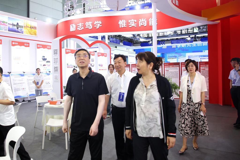 省委教育工委副书记、省教育厅厅长王树声,省委教育工委委员冀映秋,省纪委监委驻省教育厅纪检监察组组长赵军莅临万象城展区现场指导工作,副校长马亚军陪同。