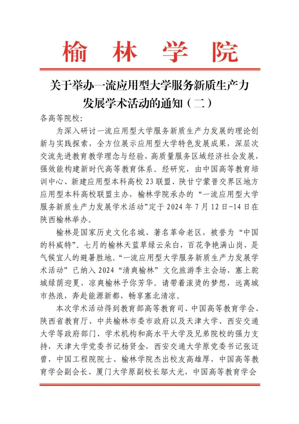 关于举办一流应用型大学服务新质生产力发展学术活动的通知(二)
