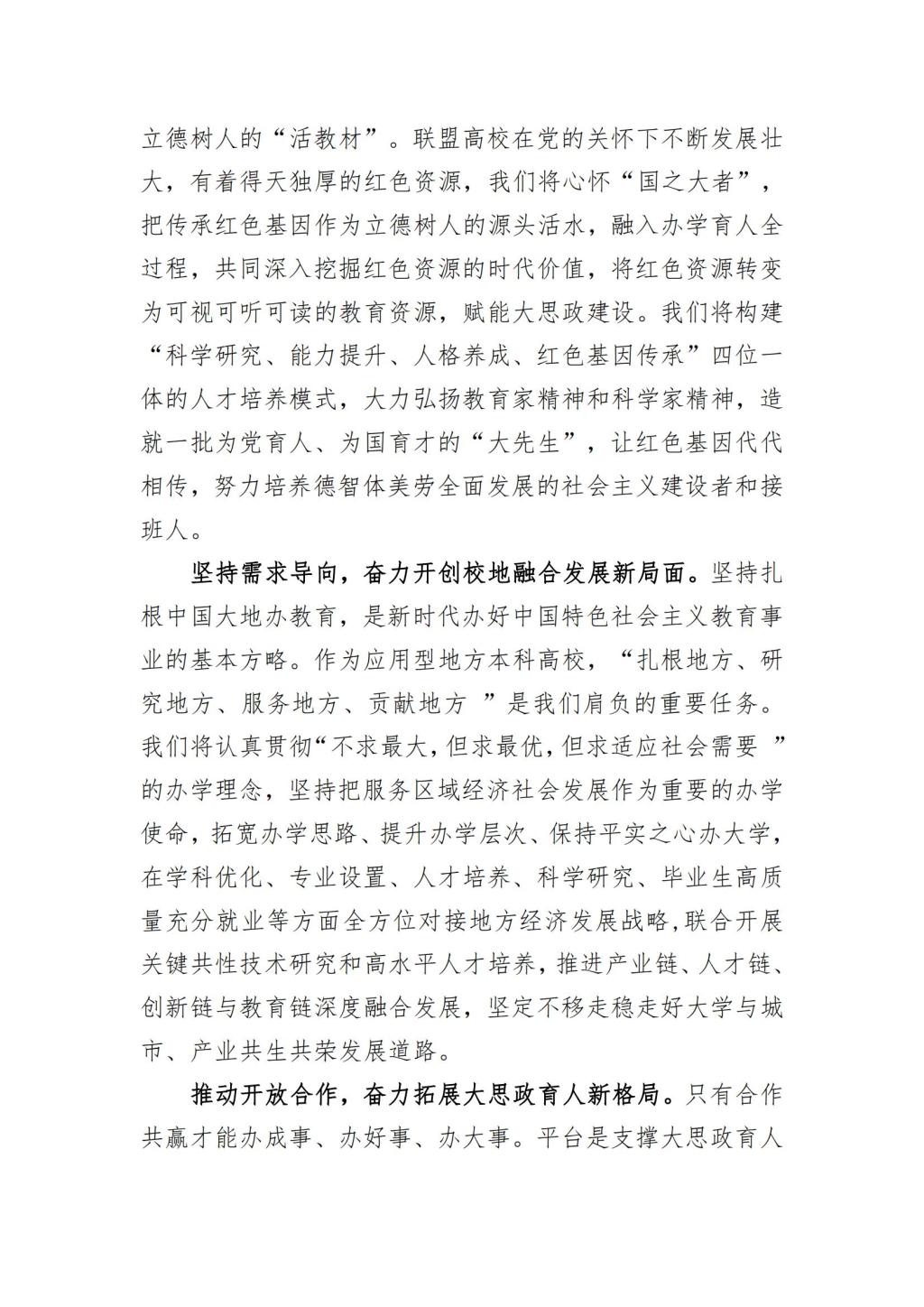 经2024年7月12日,“牢记嘱托 铸魂育人”应用型高校大思政建设联盟成立预备会暨第一届理事会第一次会议讨论,达成了符合联盟建设与发展的《榆林宣言》,现予以发布: