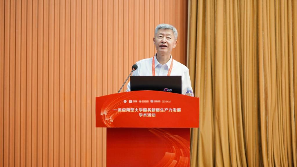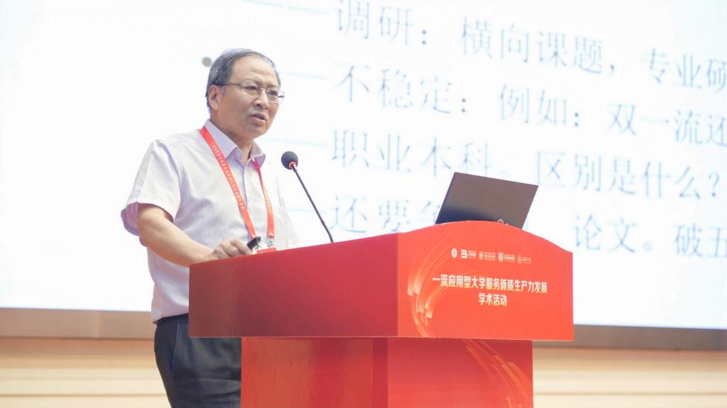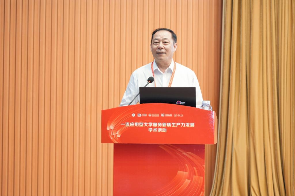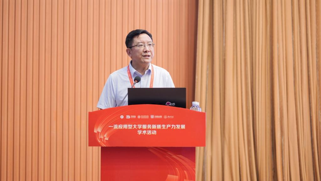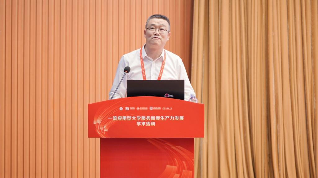 马陆亭以“应用型高校是高等教育服务新质生产力的原始主力军”为题作了主旨报告,他首先指出当下正处于世界百年未有之大变局加速演进、中华民族伟大复兴重大历史进程、新一轮科技革命和产业变革、向数字化时代转型的史诗级的变革时代,高等教育作为教育、科技、人才三位一体的结合点,科技创新、人才培养的主力军,科教融合、产教融合的关键点,不仅要率先实现自身的高质量发展,还要为国家经济社会高质量发展做好服务、提供支撑、贡献力量。应用型高校要扎根中国大地,服务地方高质量发展,努力实现创新思维、创新性技术与应用产品同时呈现的人才培养目标。行业特色高校和地方应用型高校正经历积极探索、时代升维之变与学术评价之变,应致力于服务区域产业发展,其科研应以面向产业和区域发展的基金及企业横向课题为主,在成果评价上实行由传统的论文、科研项目向产品衡量、评价的标准转换。