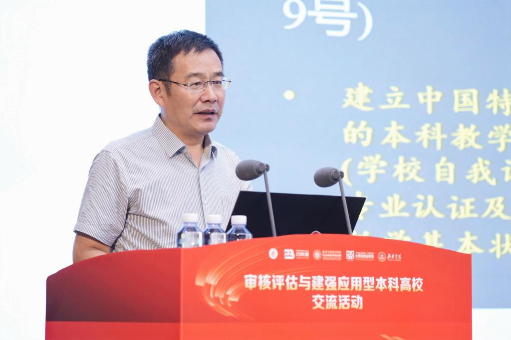 中国西部高等教育评估中心主任陆根书《新一轮审核评估:发展历程、基本特征与审核重点》专题报告从“审核评估的发展历程”“新一轮审核评估基本特征分析”“新一轮审核评估审核重点”三方面解读了审核评估的重要性。从指导思想新、评估理念新、审核标准新、结论形式新分析了第一轮审核评估的“四新”特点。陆根书从以评促建、以评促改、以评促管、评建结合、重在建设的“一方针”,突出内涵发展与突出特色发展的“两突出”,强化办学合理定位、强化教学中心地位、强化质量保障体系建设的“三强化”三方面强调指出,应用型本科高校要以人才培养目标与社会需求为适应度、教学质量与保障体系运行为有效度、人才培养目标与培养结果为符合度、教师和教学资源与对学校人才培养为保障度、学生和用人单位为满意度,要“以自己的尺子量自己”为审核评估原则,以学校为主体、以学生学习与发展为本位,把全体学生的学习效果作为关注焦点,把教学设计和实施目标是保证学生取得特定学习效果作为产出导向,建立整改问题清单,以建立评价-反馈-改进闭环,形成持续改进机制,最终实现以评促建、以评促改、以评促管、以评促强内涵式特色化高质量发展。