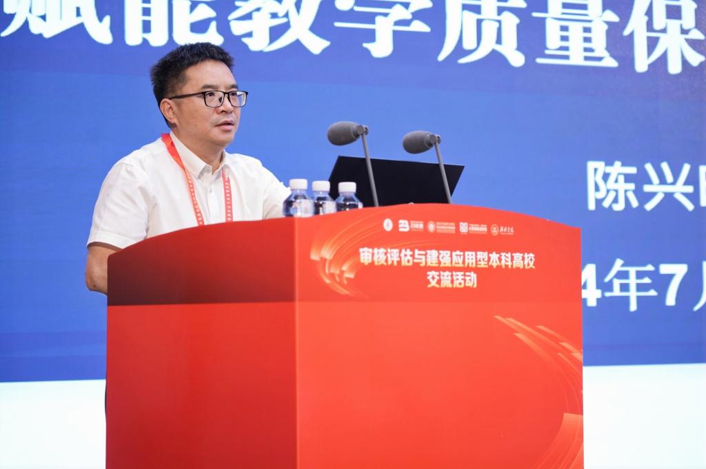 闽江学院副校长陈兴明《新一轮审核评估视域下数智赋能教学质量保障体系建设的探索》专题报告围绕“背景:数字推动、时代要求、迎评促建”“实践:智慧升级、夯实基建、强化应用”“探索:统筹推进、数据挖掘、全面赋能”三方面论述了新一轮审核评估视域下数智赋能高校质量保障体系建设的探索路径。他指出,教育数字化转型已成为我国教育改革发展的重要战略主题,并从审核评估的意义与审核评估的数字化变革两方面分析了数智赋能助力新一轮本科教育教学审核评估已成必然。应用型本科高校要加快数字新基建,搭建智慧教育环境;要充分认识校级本科教学质量监测的意义和着力点是开展各项工作的压舱石、是检验教育质量的定盘星、是挖掘教育薄弱环节的指南针,必须加强校级本科教学质量监测平台的建设和应用;要建设智慧教学平台,聚焦课堂教学质量,搭建智慧教学平台,倾力打造优质课程,全样本审视课堂教学质量,守好教学主阵地;要基于“专业是载体、课程是关键、教师是主体、学生是中心”的理念,建设智慧校园,构建智慧教育平台,丰富在线课程资源,深化教学改革;要从制度保障、过程监测、持续跟踪、有效改进、精准反馈全方位探索建标准、建平台、促提升、强措施、集聚质量保障合力实施路径,全面推动学校建立健全本科教育教学质量保障体系,形成问题清单和整改库,建立长效的问题清单反馈机制,构建自觉、自省、自律、自查、自纠的大学质量文化,为教育全国贡献力量。