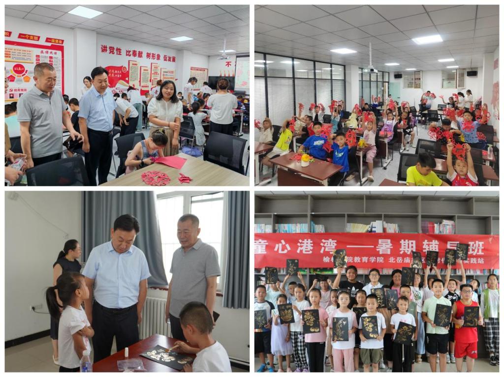 马亚军分别走进“童心守护,关爱相伴”实践团在滨河路社区开展的非遗剪纸课堂、“育”美“童”行实践团在北岳庙社区开展的非遗烧箔画课堂观摩指导,与社区小朋友亲切交流,对小学教育和学前教育公费师范生结合专业所学将儿童基础教育、美育教育和科普教育“理论+实践”的模式应用于暑期“三下乡”社会实践活动给予充分肯定和高度评价。
