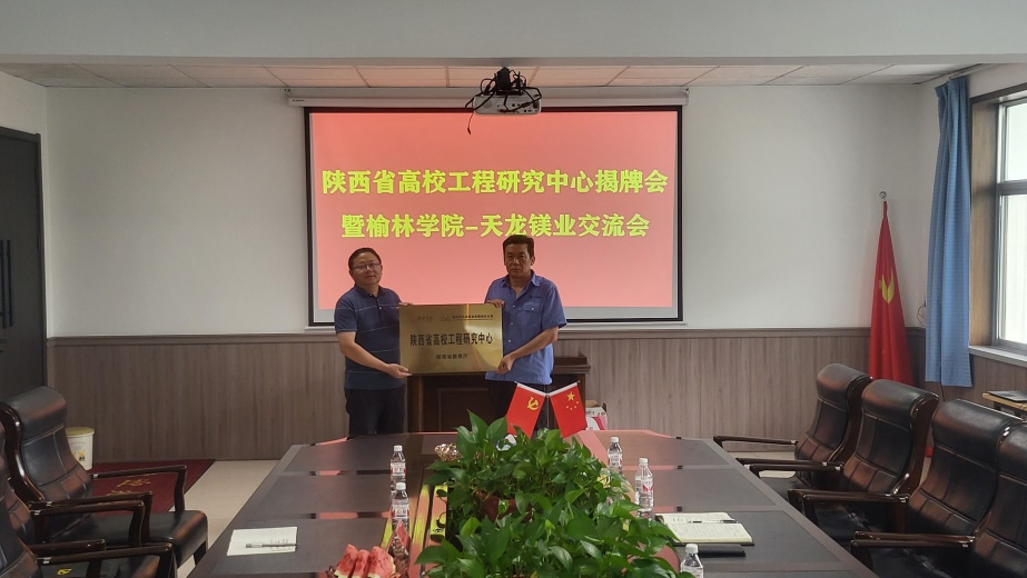 为深入贯彻创新驱动发展战略,加快创新能力提升,重点围绕榆林地区有色金属冶炼生产中余热资源回收及固废资源再利用两大突出问题,联合榆林有色金属材料产业基地申报的“有色金属冶炼工业余热及固废再利用陕西省高校工程研究中心”成功获批立项。王进仕代表工程研究中心为府谷天龙镁业有限公司授牌,双方还就镁渣余热及资源化利用、硅铁余热及硅灰再利用、熔融电石余热利用等方面的开展技术攻关及装备研发展开讨论。