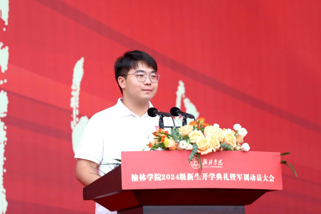 在校学生代表孙欢欢以发扬“奋斗”精神,彰显青春风采为切入,希望2024级同学勇于探索实践,敢于挑战自我,立有为之志,行有为之路,做有为之人,立志做有理想、敢担当、能吃苦、肯奋斗的新时代好青年,在风华正茂的年纪书写出属于你们的青春篇章,在敢想敢为又善作善成中绽放青春之花。