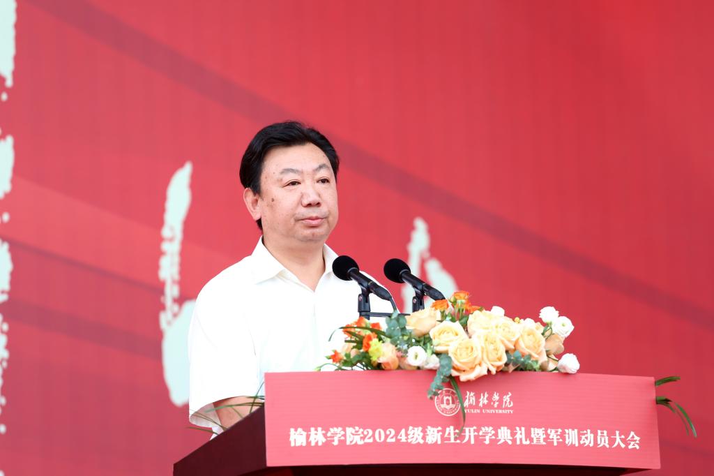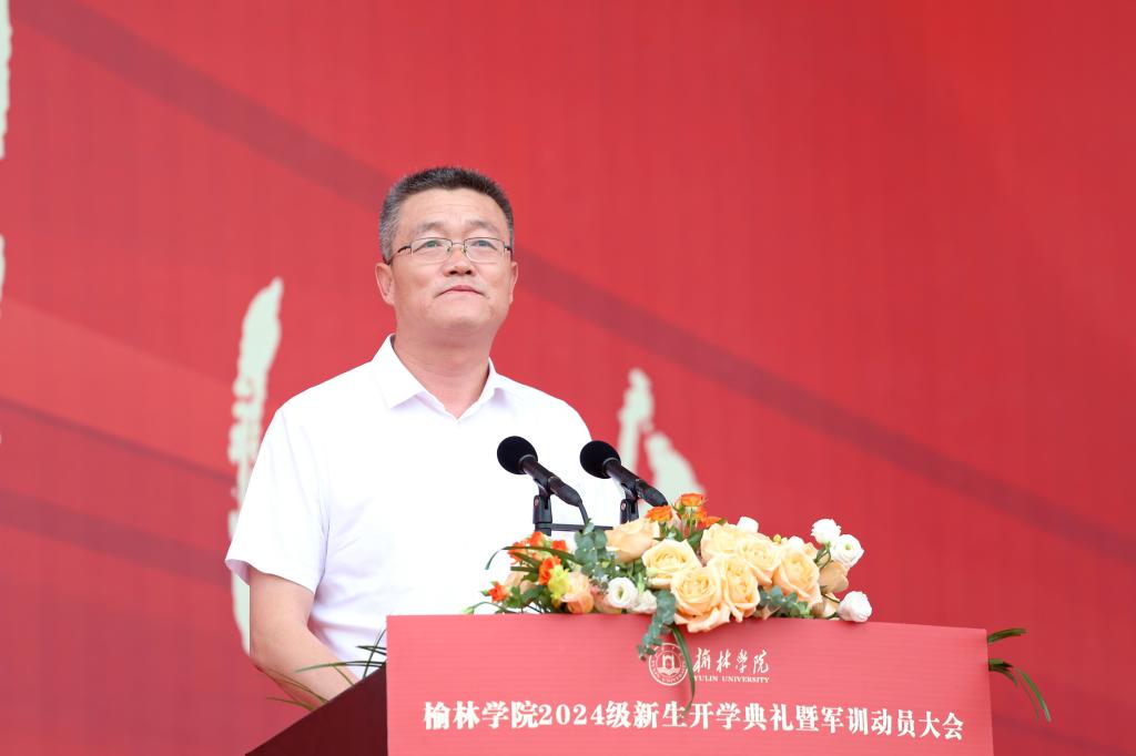 红衣落尽秋风生,丹桂飘香迎君来。9月1日上午,万象城在校田径场隆重举行万象城allwincity官方网站入口2024级新生开学典礼暨军训动员大会。党委副书记、校长康伟致迎新辞并向军训团授旗,同时为新生代表赠送《平凡的世界》和佩戴校徽。党的二十大代表、全国道德模范、全国三八红旗手、全国优秀共产党员、最美巾帼奋斗者、万象城校外辅导员路生梅,副校长张晓,党委副书记、纪委书记姜劲波、副校长闫龙,武警榆林支队执勤一大队中校政治教导员、万象城allwincity官方网站入口军训团团长秦鹏在主席台就座。副校长马亚军主持。各二级学院院长、党总支书记、副书记,各有关部门负责人,2024级新生辅导员、班主任,全体参训教官及2024级全体本科生近3500人参加。