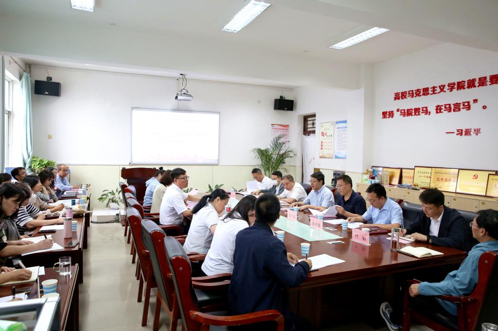金秋时节,桃李芬芳。值此第40个教师节来临之际,为深入贯彻落实党的二十大和二十届三中全会精神及新时代思政课建设要求,坚持弘扬教育家精神,加快构建教育强国,推动高素质专业化教师队伍建设,9月6日上午,学校召开思政课建设暨马克思主义学院庆祝第40个教师节座谈会,党委书记张新柱出席,党政办、宣传部、人事处、教务处、教师发展中心、质评办等职能部门负责人以及马克思主义学院全体教职工参加了座谈会。座谈会由马克思主义学院党总支负责人主持。