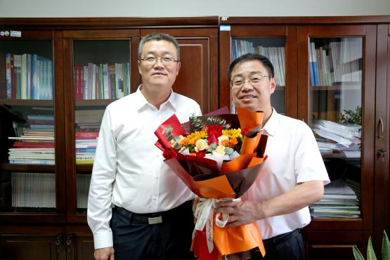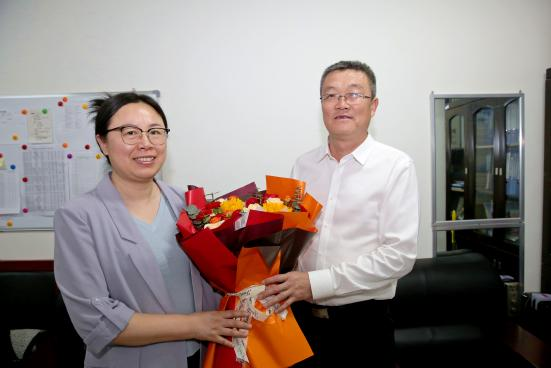 康伟为陕西省人大代表张智芳教授送上鲜花,表达节日的祝贺。希望她在未来的工作中取得更加辉煌的成绩。张智芳表示,将会带着学校党委的嘱托,继续踔厉奋进,甘于奉献,为培养更多优秀人才贡献自身力量。
