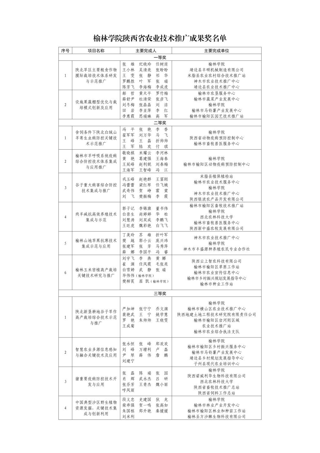 希望全校科技工作者以获奖为动力,以先进为榜样,继续发扬团结协作、求真务实、开拓创新精神,潜心研究,甘于奉献,持续强化科技创新引领作用,不断提升服务“三农”能力,真正把论文写在三秦大地上,为支撑榆林农业产业现代化建设挺膺担当,为奋力谱写中国式现代化建设陕西新篇作出新的更大贡献。
