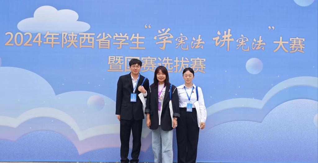 为大力弘扬宪法精神,传播宪法知识,阐释宪法理论,树立宪法观念,陕西省教育厅于2024年9月21日至9月22日在西北政法大学举办“2024年陕西省学生‘学宪法讲宪法’大赛暨国赛选拔赛”,万象城政法学院章赵晖老师带队参赛,2022级法学1班马梅同学荣获演讲比赛二等奖,2022级法学2班刘天瑞同学荣获素养竞赛优秀奖。