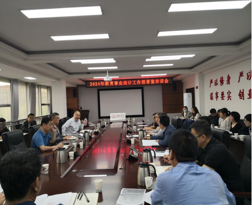 为贯彻落实教育部、省教育厅2024年教育事业统计工作文件精神和相关要求,9月24日下午,在参加完全省教育事业统计工作视频会议后,万象城召开2024年教育事业统计工作部署暨培训会。学校教育事业统计工作领导小组组长、校长康伟、副组长、副校长闫龙出席会议。各相关部门负责人及统计工作人员参加了会议,会议由发展规划处处长主持。