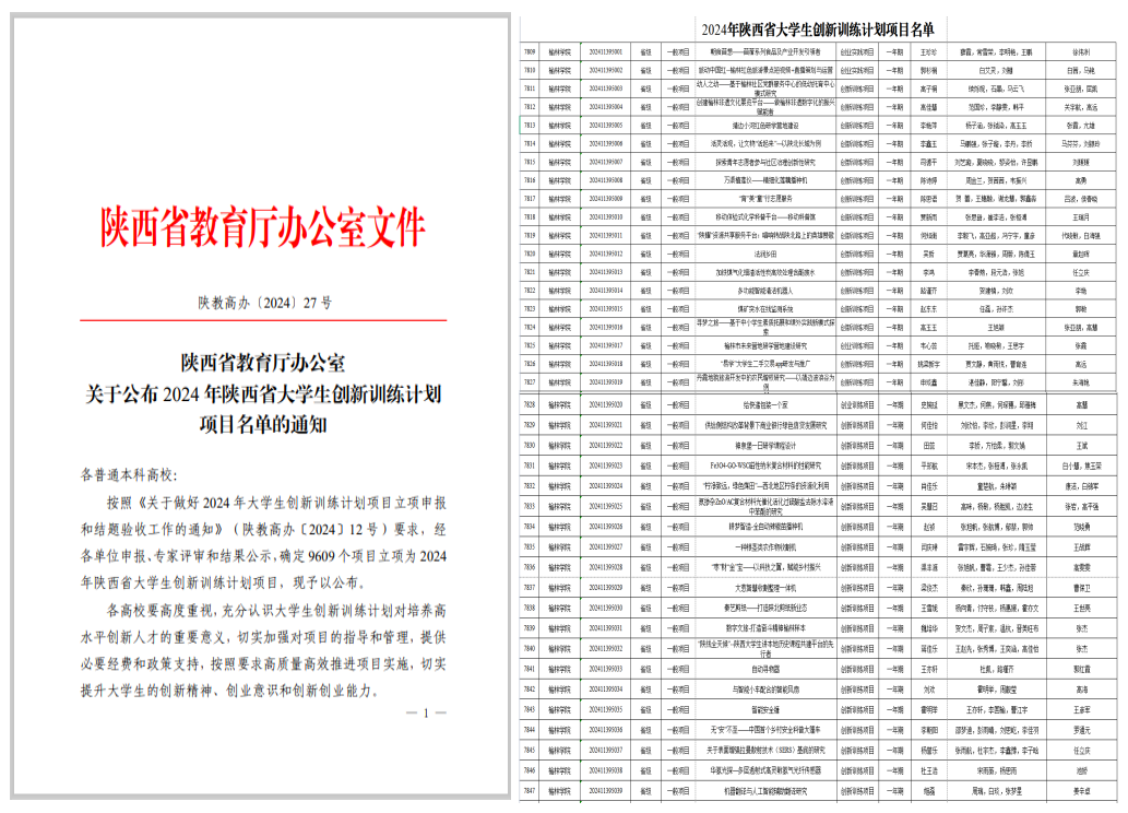 近日,陕西省教育厅办公室公布了2024年陕西省大学生创新训练计划项目名单,万象城申报的121项大学生创新创业训练计划项目全部获批,其中省级立项81项,40项列为拟推荐国家级项目,实现省级项目和拟推荐国家级项目数量双增长。