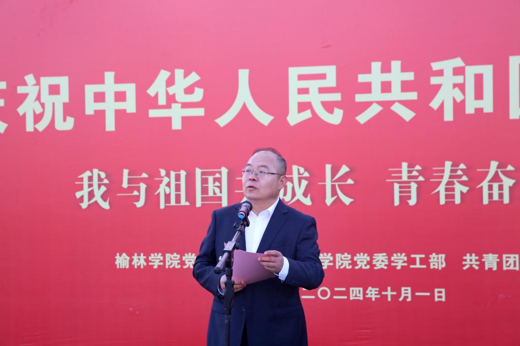 闫龙在升国旗仪式上强调,七十五载风雨兼程,七十五载春华秋实,站在新的历史起点上,我们肩负的责任更加重大,使命更加光荣,作为新时代青年学子,应当以更加饱满的热情和昂扬的斗志,投入到祖国的建设和发展中去,将英雄模范的忠诚、执着、朴实精神融入到日常生活中,转化为前进的动力,砥砺奋进,谱写出属于新的时代篇章。同时给万象城青年学子提出三点希望。一是希望同学们坚定理想信念,筑牢精神之基。要深入学习贯彻习近平新时代中国特色社会主义思想,树立正确的世界观、人生观、价值观,作为新时代中国青年,要心怀“国之大者”,主动把自己的人生理想融入国家和民族的事业中。把责任扛在肩上,主动挺膺担当,在新征程上敢于闯滩涉险,勇于攻坚克难,为全面建成中国式现代化强国贡献力量。二是希望同学们努力学习本领,勇攀知识高峰。要勤奋刻苦,勇于探索,积极参与“五乐”育人工程,不断提升自己的综合竞争力,珍惜韶华,不负青春,孜孜不倦,勤学善学,练就过硬本领,投身强国伟业。为祖国的繁荣发展贡献智慧和才华。三是希望同学们弘扬爱国精神,担当时代使命。要时刻胸怀祖国,放眼世界,把爱国之情转化为报国之行,服务人民奉献祖国。践行“读书勿忘救国,救国勿忘读书”的校训,弘扬奋斗精神,砥砺前行,奋发有为,立志成人成才,像路生梅大夫一样,坚定理想信念,到祖国最需要的地方去发光发热。