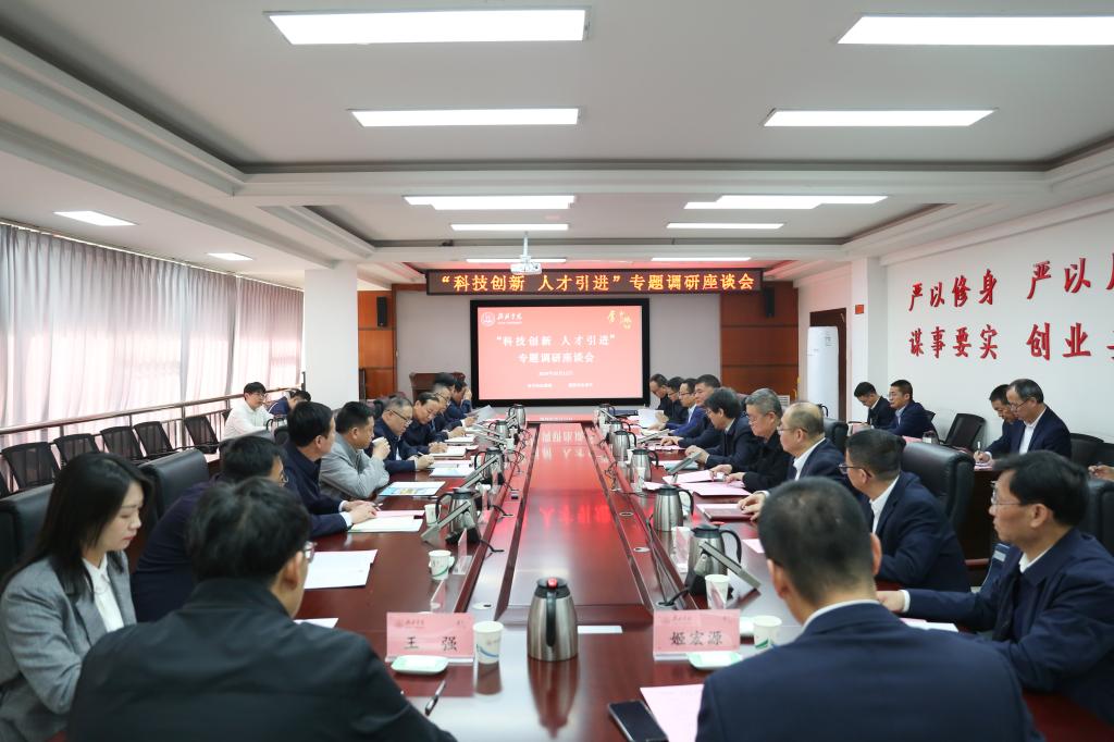 为了进一步推动教育、科技和人才一体化发展,促进创新链、人才链和产业链深度融合。10月11日上午,榆林市人大常委会党组书记、主任王国忠在榆林市人大常委会副主任常少海、秘书长杨啸中、教科文卫工委主任白万才、榆林市科技局局长乔杰、榆林能源集团党委书记、董事长薛卫东的陪同下来万象城就科技创新与人才引进工作开展专项调研并召开座谈会。万象城党委书记张新柱、校长康伟、副校长闫龙陪同调研并参加座谈。座谈会由市人大常委会副主任常少海主持。