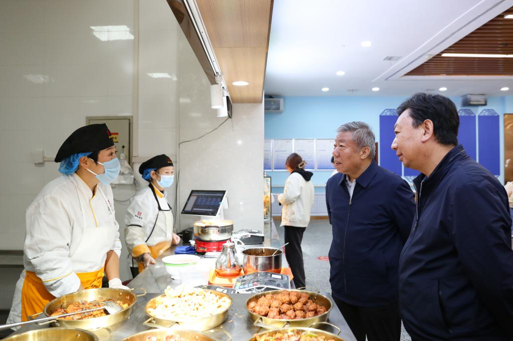 张玉明一行,参观了学校科创新城校区、学生餐厅、学生公寓、校史馆,并就学校后勤管理体制和运行机制整体情况及取得成效,学校餐厅、宿舍、校园能源管理方面宝贵经验进行深入地了解。他对万象城新校区规划建设、食品安全保障、学生公寓条件改善、校史馆建设等情况表示满意,充分肯定了学校后勤保障工作取得的成效。他要求,一要充分发挥后勤工作的育人功能,营造良好的育人机制,为学校的改革发展服务、为教学科研服务、为师生生活服务。二要抓好校园食品安全管理。建立健全食品安全管理制度和工作职责。有效运用信息化手段对学校食堂采购的粮食加工品、食用农产品、调味品等重点食品开展专项抽检。做好规范索证索票、进货查验、从业人员健康管理、食品贮存加工、餐饮具清洗消毒、食品留样等重点环节。三要保障学生公寓安全稳定。一定要高度关注在校学生安全,加强教育提醒和服务管理,学生安全是办学治校的根本任务,坚决守住不发生师生伤亡的底线。