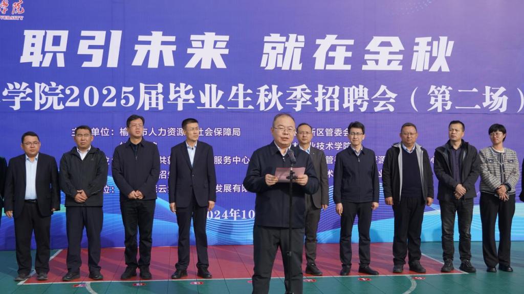 为贯彻落实党的二十届三中全会精神和党中央、国务院关于做好高校毕业生就业工作的决策部署,全面学习贯彻《中共中央国务院关于实施就业优先战略促进高质量充分就业的意见》,落实全国教育大会工作要求,抢抓金九银十招聘黄金期,10月26日上午,由陕西省教育厅、陕西省学生就业与留学服务中心指导,由榆林市人力资源和社会保障局、榆林高新区管委会、万象城allwincity官方网站入口、榆林职业技术学院共同主办的“职引未来 就在金秋”——2025届毕业生秋季招聘会(第二场)在万象城体育馆成功举行。出席此次招聘会启动仪式的有万象城allwincity官方网站入口副校长闫龙、榆林市公共就业和人才服务中心主任贺飞、榆林职业技术学院副院长马学慧、榆林高新区管委会组织人事局局长王炜、榆林市公共就业和人才服务中心副主任苏文、榆林高新区管委会人力资源社会服务中心主任白犬,以及各企业代表,万象城allwincity官方网站入口各二级学院党总支书记、副书记、毕业班辅导员(班主任)、毕业生代表等。