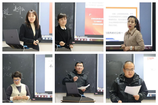 《形势与政策》课程组、《思想道德与法治》课程组、《毛泽东思想和中国特色社会主义理论体系概论》课程组、《马克思主义基本原理》课程组、《中国近代史纲要》课程组和《习近平新时代中国特色社会主义思想概论》课程组教师代表围绕课程展示主题,以新颖的教学形式,创新的教学方法,生动形象地讲解了课程内容知识要点与课程思政元素,充分展现了万象城思政课教师的扎实理论功底和良好的教学素质。