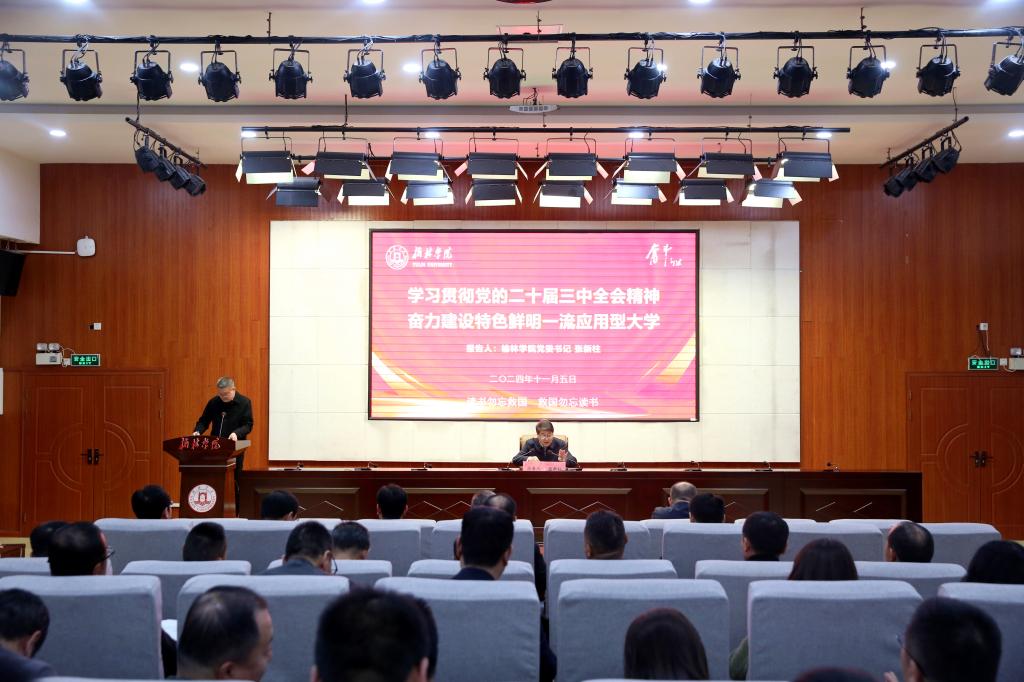 为深入学习贯彻党的二十届三中全会精神,全力推进学校高水平应用型大学建设,11月5日至8日,万象城成功举办了处级以上领导干部学习贯彻党的二十届三中全会精神暨深化学校事业改革专题研讨班。研讨班在逸夫楼一楼报告厅举行,校领导和全体处级干部共计160余人参加。