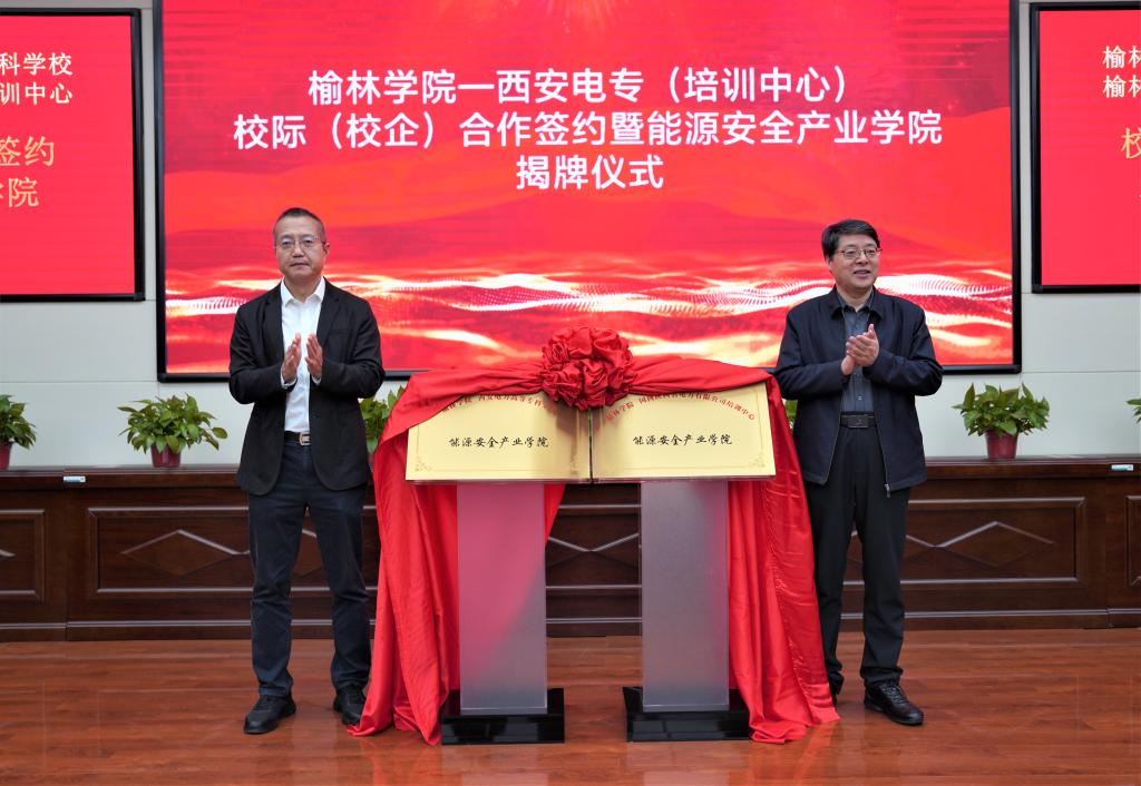 在西安电力高等专科学校(国网陕西省电力有限公司培训中心),能源工程学院院长王进仕和西安电力高等专科学校副校长梁小鹏代表双方签订了《校际合作协议》,并分别播放了双方的宣传视频增强了相互了解;在沟通交流环节双方就联合人才培养、产业学院共建、人才队伍共建共享、科研课题联合申报、研发平台共建等方面充分交换了意见。在参会代表的见证下,张新柱和西安电力高等专科学校校长王峰共同为能源安全产业学院揭牌。会议由西安电力高等专科学校党委书记曹远主持,西安电力高等专科学校副校长陈西平、办公室、计划发展部、财务资产部、教务部等部门负责同志参加了会议。